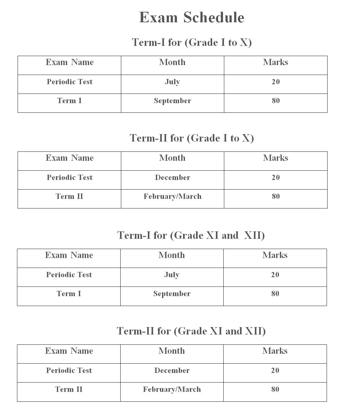 Sant Sudha Sagar Public School Exam Schedule